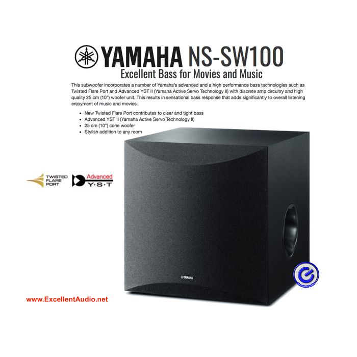 Deskripsi Paket Yamaha RX-V385 RXV385 NS PA150 NS SW100 bluetooth home theatreNS-SW100SubwooferDriver 25 cm (10”) coneDynamic Power 100 W (5 ohms)Output Power 50 W (100 Hz, 5 ohms, 10% THD)Frequency Response 25–180 HzAdvanced YST YesTwisted Flare Port YesDimensions (W x H x D) 351 x 352 x 408 mm; 13-7/8” x 13-7/8” x 16-1/8”RX-V385 5.1 ChannelRated Output Power (20Hz-20kHz, 2ch driven) 70 W (6 ohms, 0.09% THD)Maximum Effective Output Power (1kHz, 1ch driven) (JEITA) 135 W (6 ohms, 10% THD)Dynamic Power per Channel (8/6/4/2 ohms) - / 110 / 130 / 150 WDolby TrueHD YesDolby Digital Plus YesDTS-HD Master Audio YesYPAO sound optimization YesDA Converter Burr-Brown 384 kHz / 32-bit DAC x 3Video Features 4K Ultra HD Pass-through and upscaling Yes (4K / 60p, 4:4:4)HDMI 3D passthrough YesHDMI eARC Yes (via future firmware update)HDMI Audio Return Channel YesHDMI upscaling Yes (HDMI® to HDMI)Bluetooth Yes (SBC)Headphone Output 1Tuner Section FM/AM Tuner YesDimensions (W x H x D) 435 x 161 x 315 mm; 17-1/8” x 6-3/8” x 12-3/8”